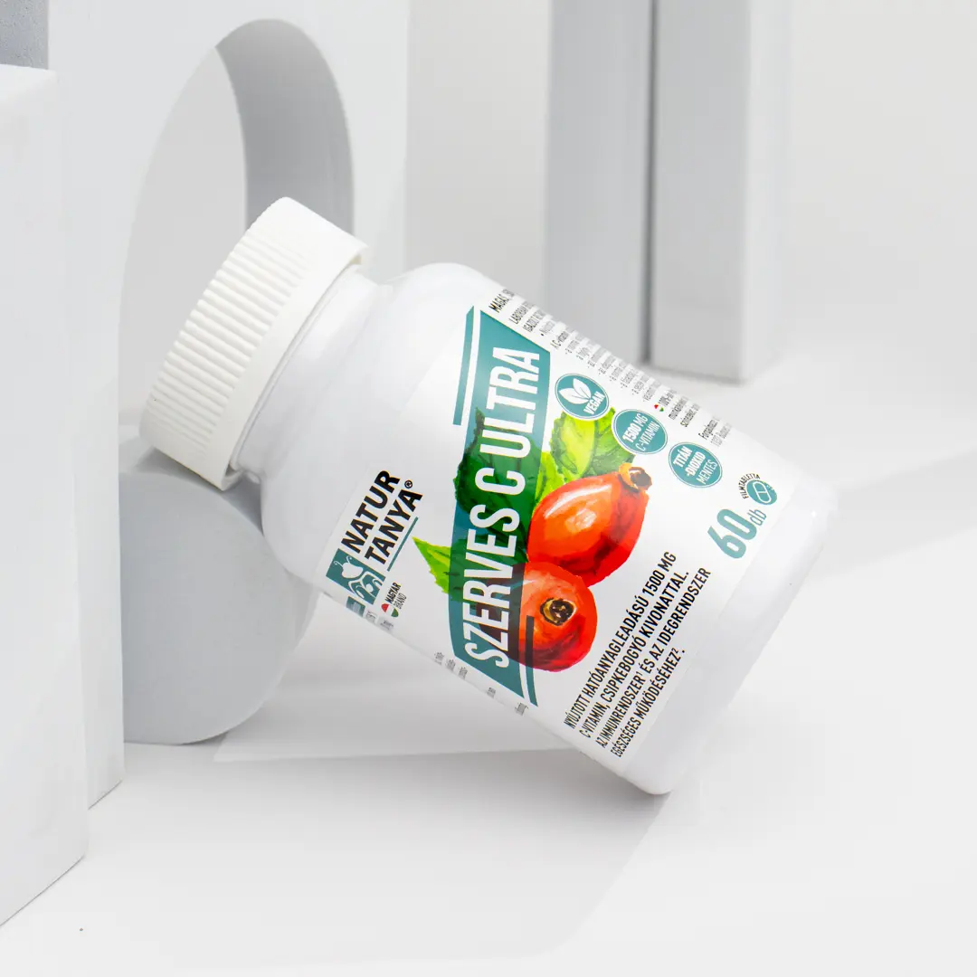 Nyújtott felszívódású 1500 mg C-vitamin csipkebogyóval: antioxidáns védelem, immun- és idegrendszeri támogatás a nap folyamán.